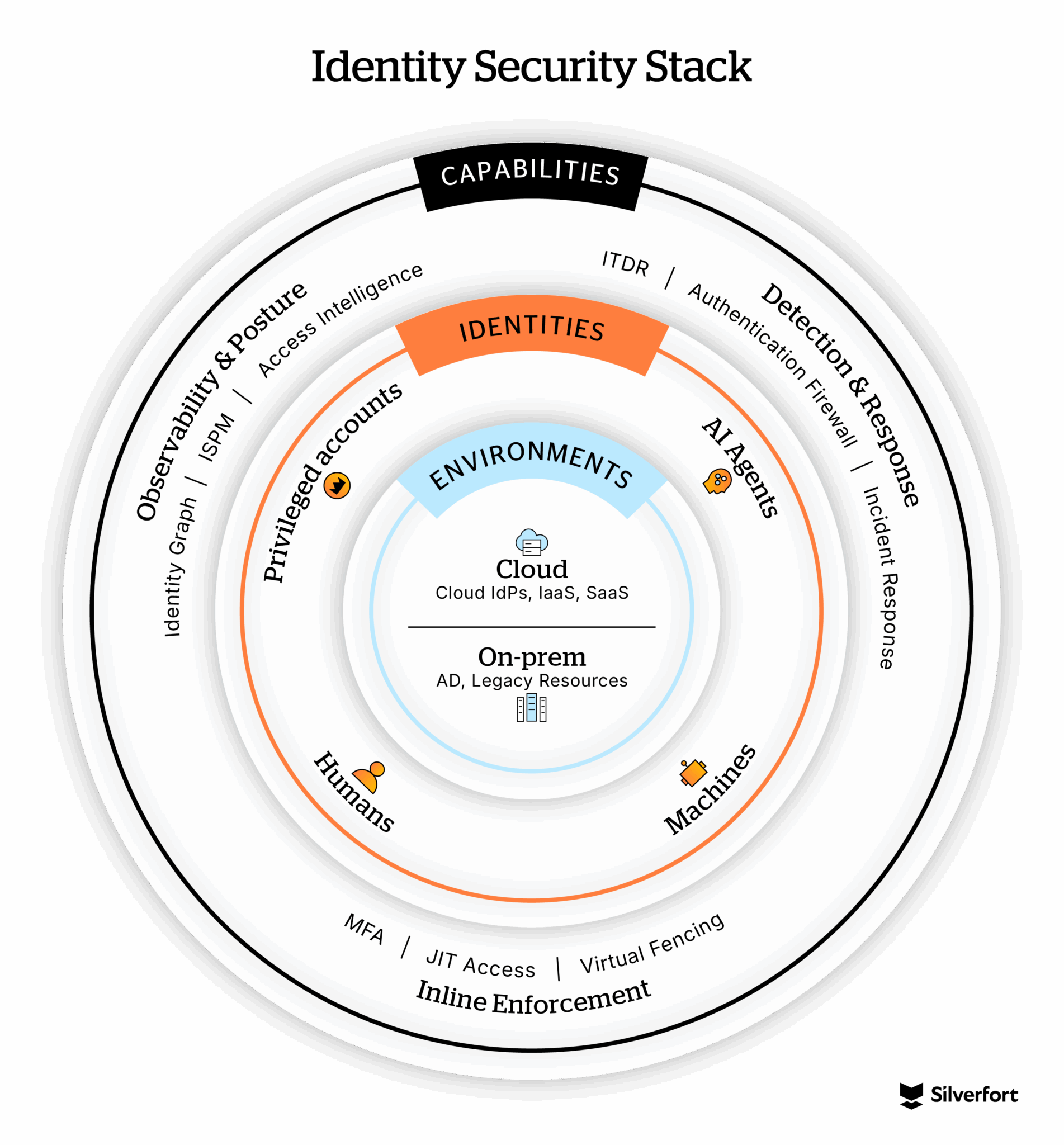 Η πλατφόρμα της Silverfort προστατεύει πλέον κάθε τύπο ταυτότητας -ανθρώπινης, μηχανικής και τεχνητής νοημοσύνης- σε κάθε περιβάλλον. Παρέχει στους οργανισμούς την πλήρη εικόνα και τη δυνατότητα να ενεργούν βάσει αυτής, σε πραγματικό χρόνο.