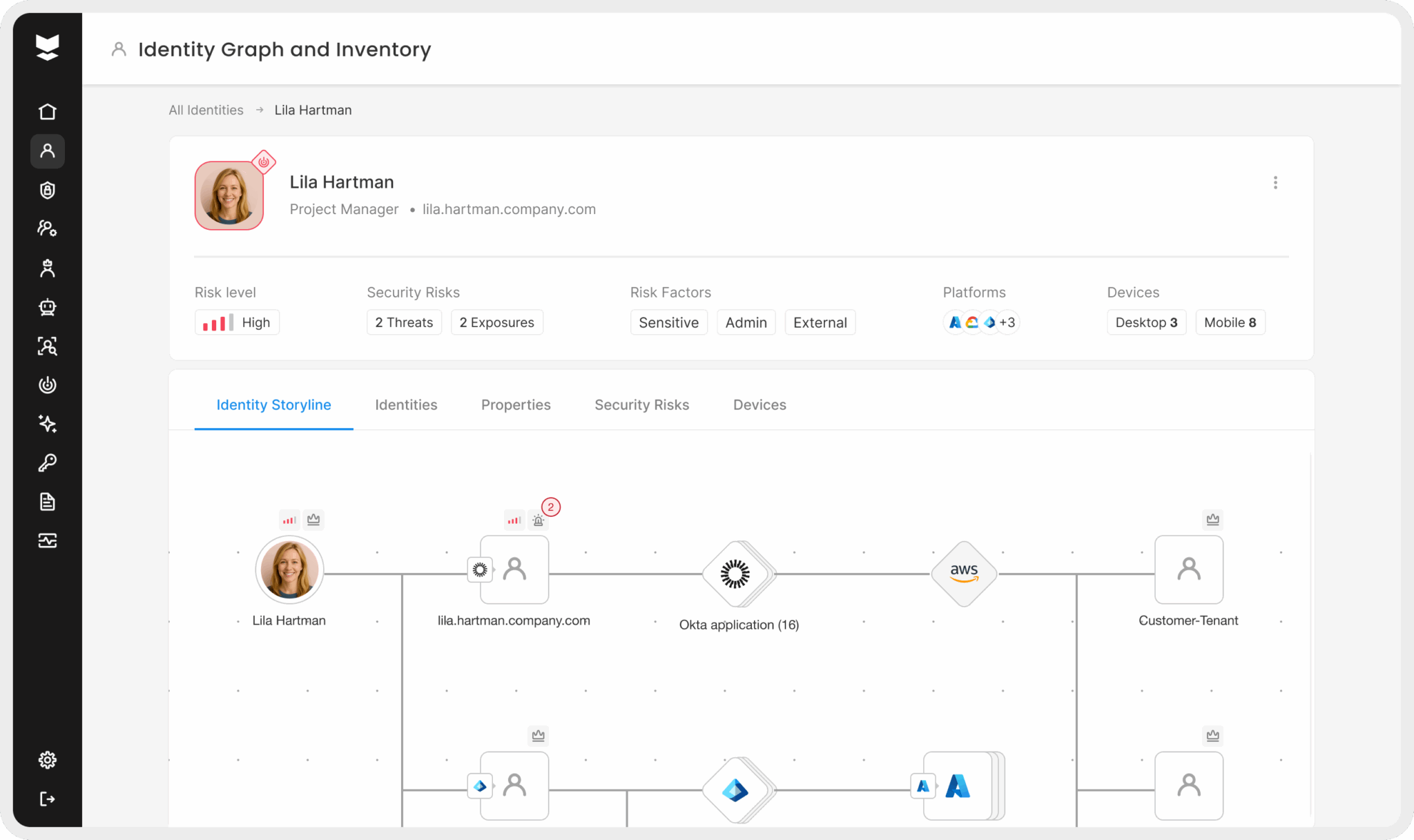 Με το Identity Graph & Inventory, η Silverfort κατέστησε ορατή κάθε ταυτότητα σε ολόκληρο το «πλέγμα» ταυτότητας της επιχείρησης -κάθε χρήστη, μηχανής, δικαιώματος και σχέσης σε συστήματα νέφους (cloud) και στις εγκαταστάσεις (on-prem) χαρτογραφείται δυναμικά. Πρόκειται για μια ενιαία πηγή αλήθειας που βοηθά τις ομάδες να φέρνουν στην επιφάνεια κρυφές διαδρομές πρόσβασης και λογαριασμούς με υπερβολικά προνόμια, να διεξάγουν ταχύτερες έρευνες, να απλοποιούν τους ελέγχους και να εξαλείφουν τα τυφλά σημεία. Αντί για στατικά υπολογιστικά φύλλα ή αποσπασματικές αναφορές, λαμβάνετε ζωντανές πληροφορίες που αντικατοπτρίζουν την πραγματικότητα του περιβάλλοντος σας.